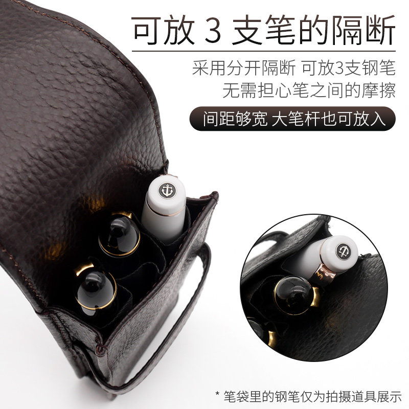 Aviation Three first-layer cowhide pen sleeve pen bags Black brown pen curtain protective sleeve stationery storage bag