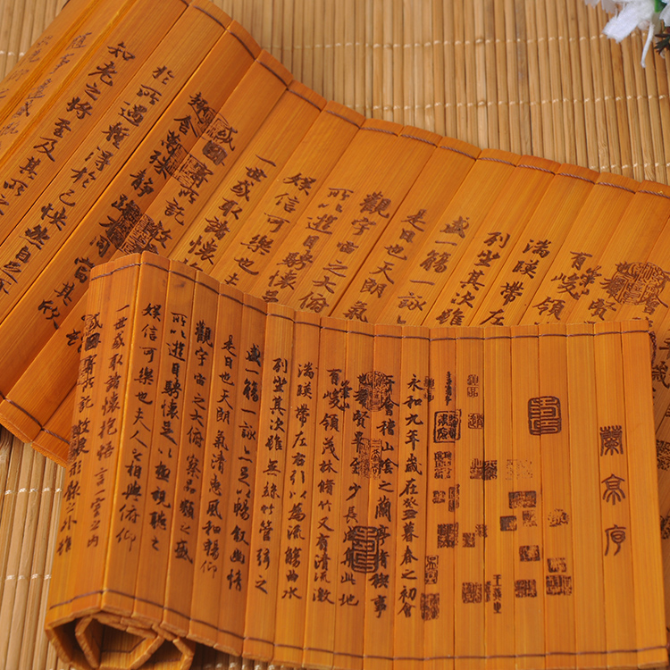 Bamboo slips, tea sets, jewelry, retro photo props, orchid pavilion preface slips, carving background, shooting background decoration