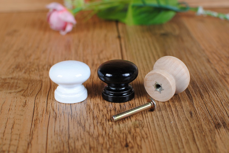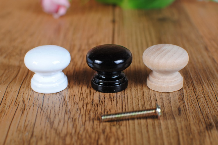 Solid wood white embryogenic furniture handle cabinet door handle drawer round handle single-hole handle mushroom handle three-color selection