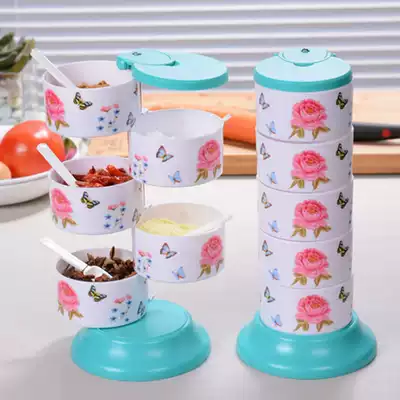 Colorful butterfly flower five-layer seasoning tank Wheat straw four-layer seasoning tank