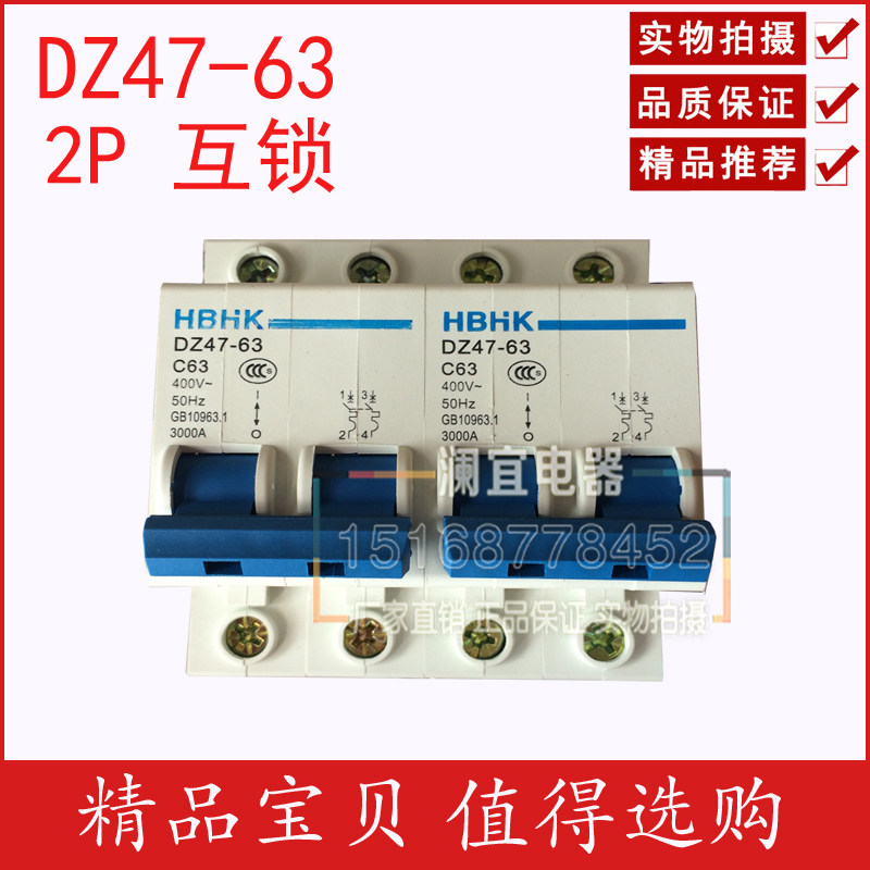 Voltage regulator special air switch DZ47-63 2P electric car dual power supply switching switch interlock switch