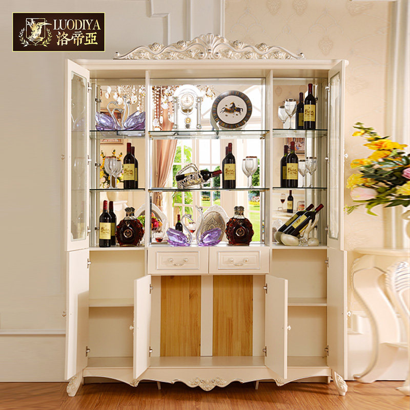 European-style modern minimalist wine cabinet partition cabinet with drawing silver carving cabinet living room home decoration cabinet hall cabinet four doors