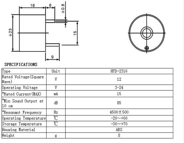 Piezonic active buzzer HYD-2316 continuous sound DC 3-24V Huayu electronic buzzer