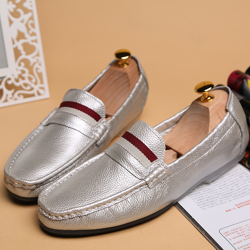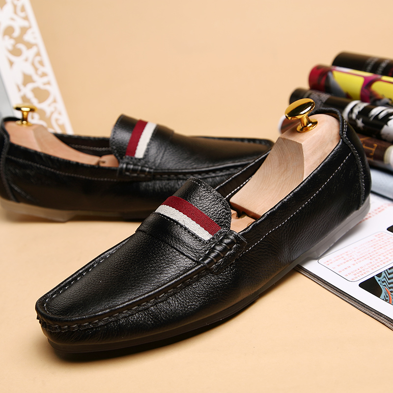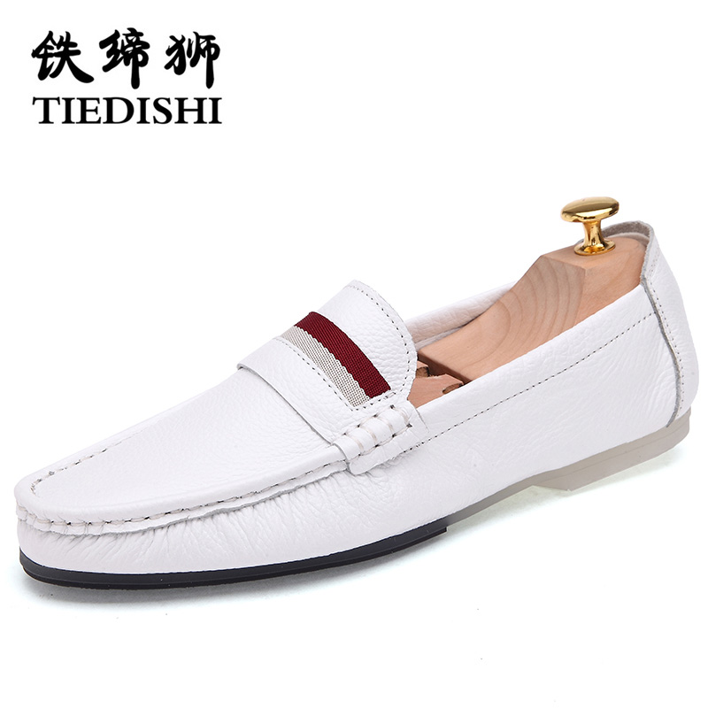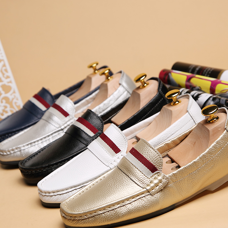 Head-layer cow leather egg roll white men's bean-bean shoes Men's genuine leather Han version Soft bottom sloth One foot pedal casual leather boom