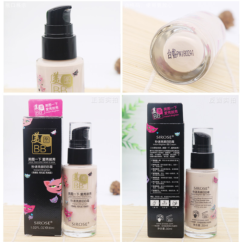 SIROSE fair-skinned second-speed brightening BB cream 30ml Meitu Shake Powder Nude Makeup Concealer Strong Moisturizing Beauty Cream