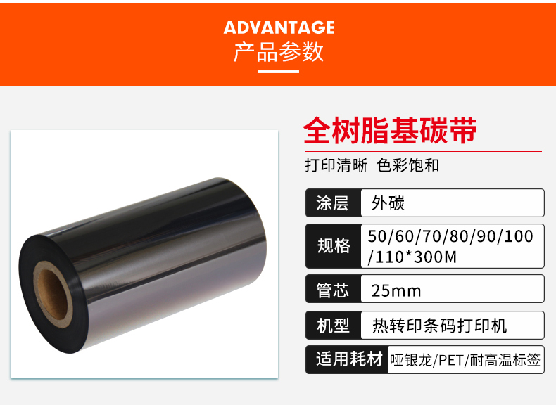 Imported purple surface full resin carbon with 90*300 PET PVC Xiao Yinlong label special ribbon resistant oil resistant