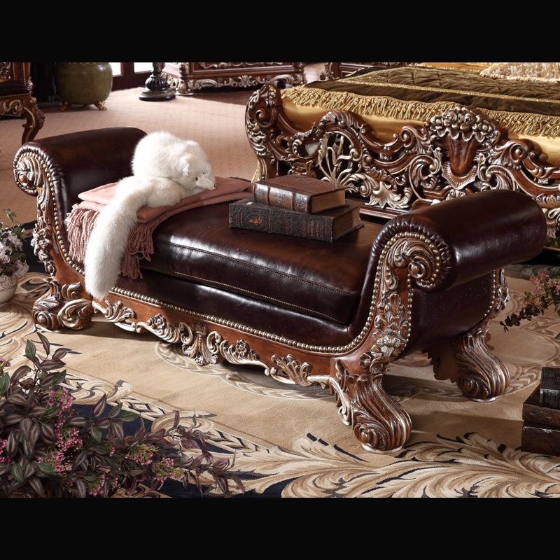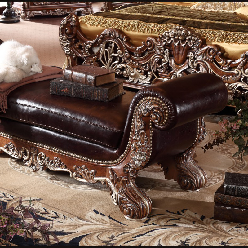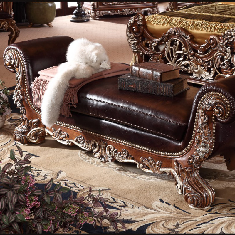 Ostyle Bed Tailstool American Solid Wood Carvings for shoes Bench Bedroom Couch Stool style genuine leather down-to-earth villa customized