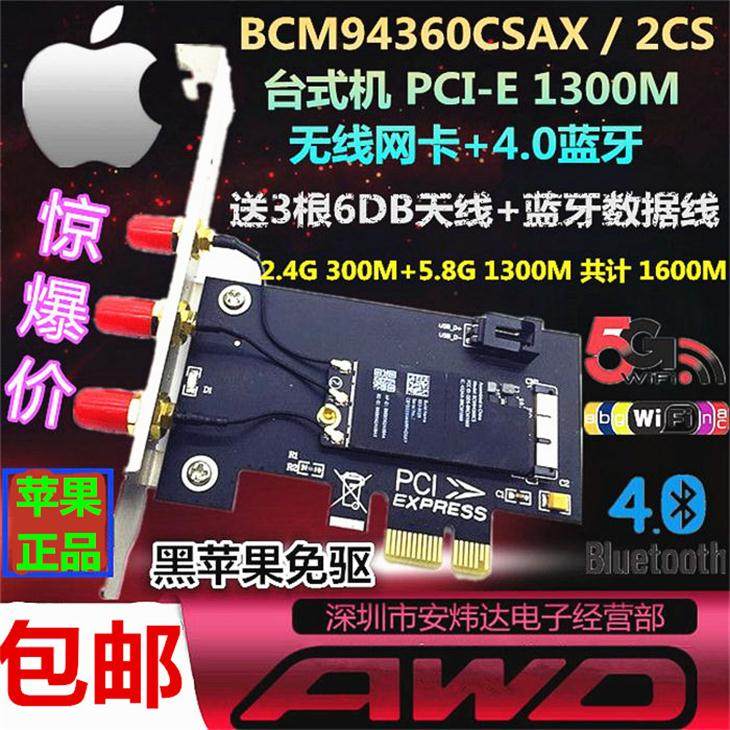 Black Apple BCM94360CS 2CS Desktop PC PCI-E AC1600M Dual Band Wireless Network Card Adapter Card