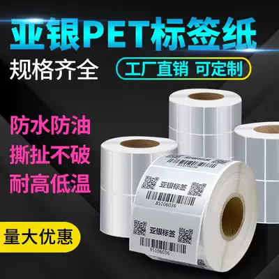 Matte silver label paper Waterproof PET Asian silver 60*40 50 35 30 25 20 15 Self-adhesive barcode stickers customized
