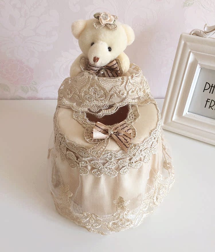 Extractable paper towels toilet paper box cute extraction style paper towel small bear toilet paper box lace tissue box cylinder toilet paper box champagne gold
