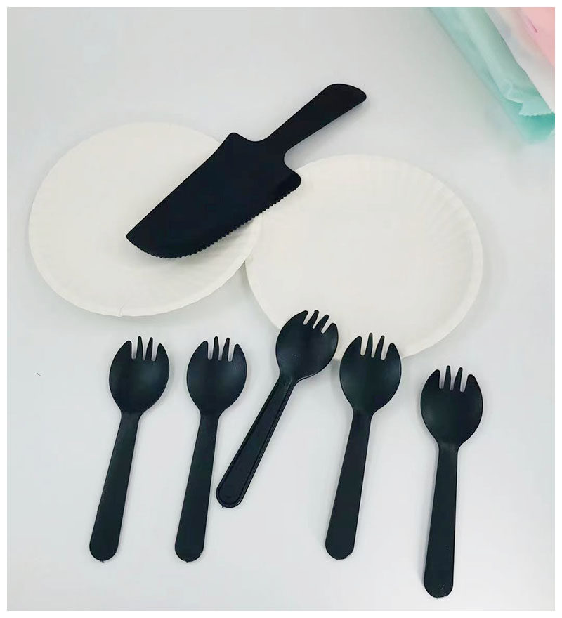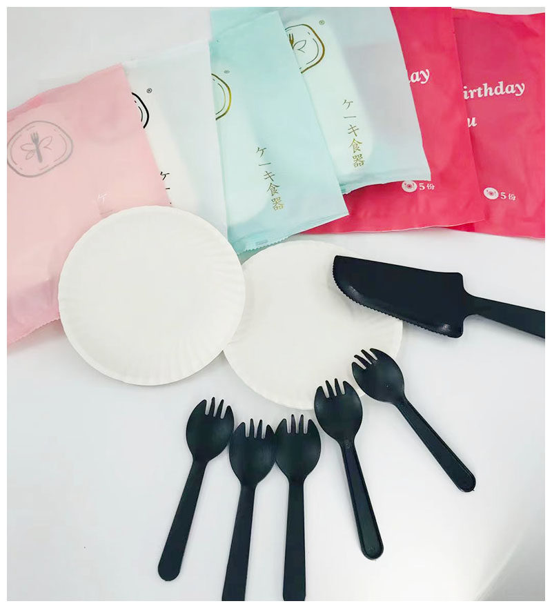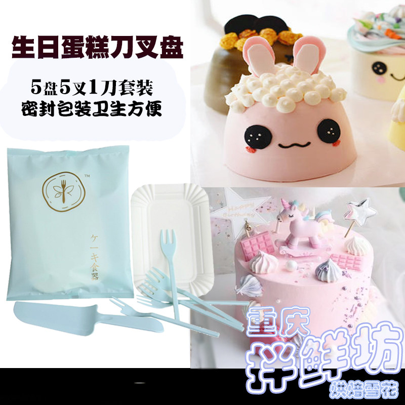 Birthday Cake Knife Fork paper tray disposable dinner plate Snack Dish Pastry Dish Cutlery Set 5 Pan 5 Fork 1 Knife Small Package
