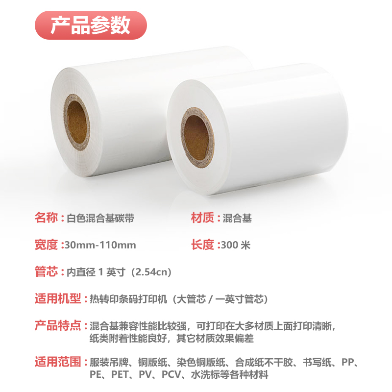 White mixed base 70 90 110mm 300m barcode printer color white mixed carbon belt