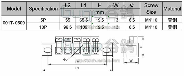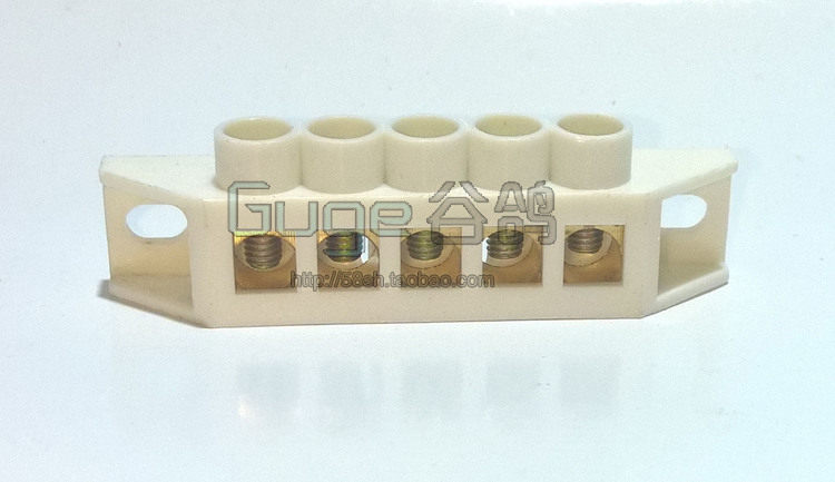 Side-mounted zero line row for distribution box, 5 holes connected to zero copper bar, 5-position copper bar terminal block, white zero line terminal