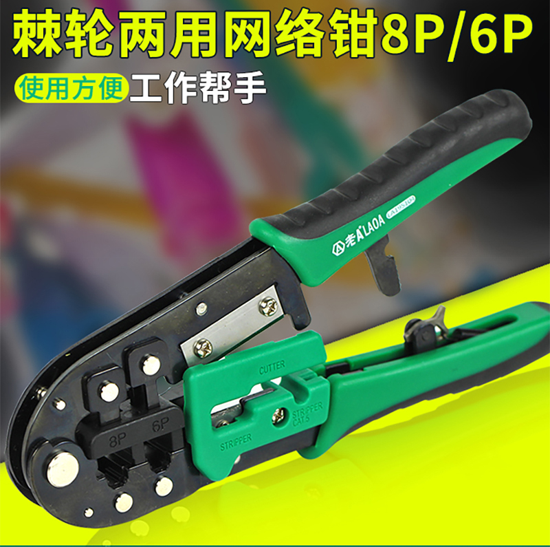 Old A Taiwan manufacturing dual-use ratchet network pliers Wire Pliers Crystal Head wire pliers 6P 8P Press Wire Pliers