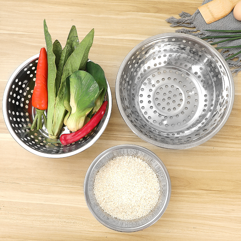 Thickened stainless steel drain basin Washing rice basin drain basin Amoy rice amoy rice basket Rice sieve washing vegetable basin Fruit basin drain basin