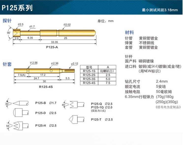 R125-4S Huarong probe 2 4mm welding wire needle sleeve test needle sleeve single ring needle sleeve ring height 7 5mm