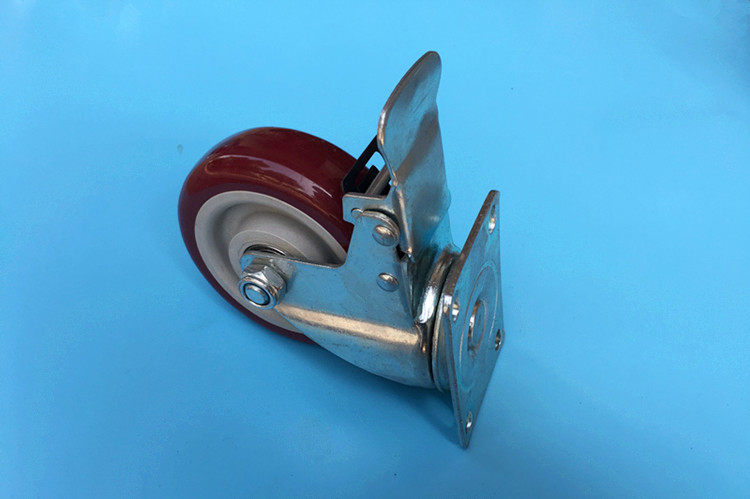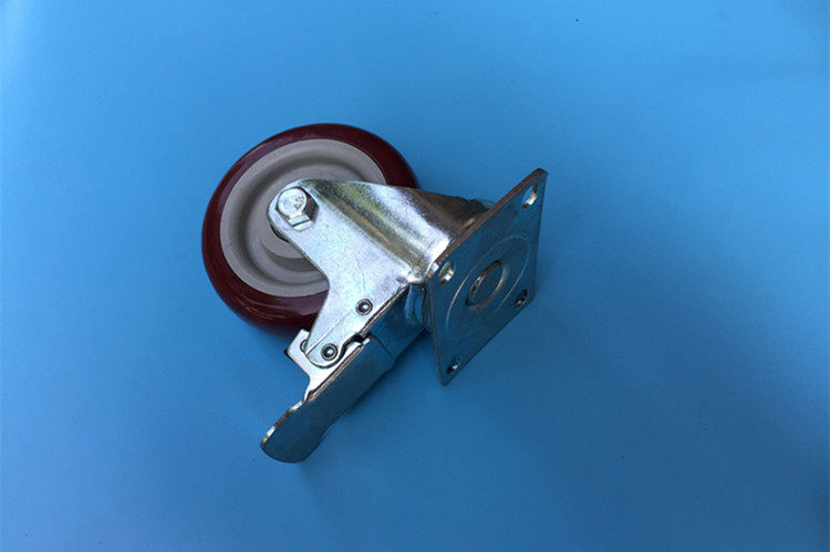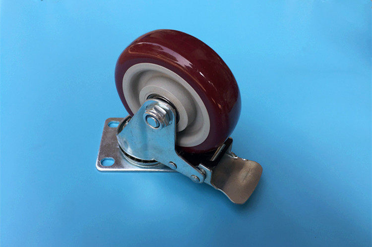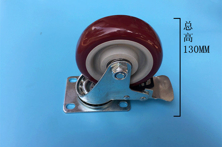 4 inch jujube red casters polyurethane with brake universal wheel silent heavy-duty flatbed trolley wheel