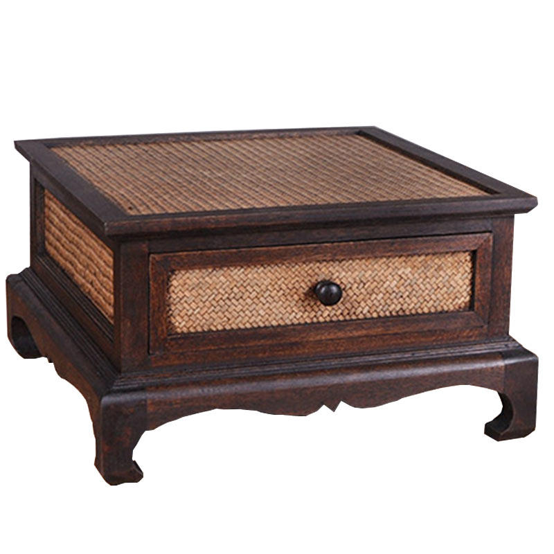 Thai handicraft furniture solid wood tea table small apartment Thai home rattan bamboo decoration small tea table tea table creative