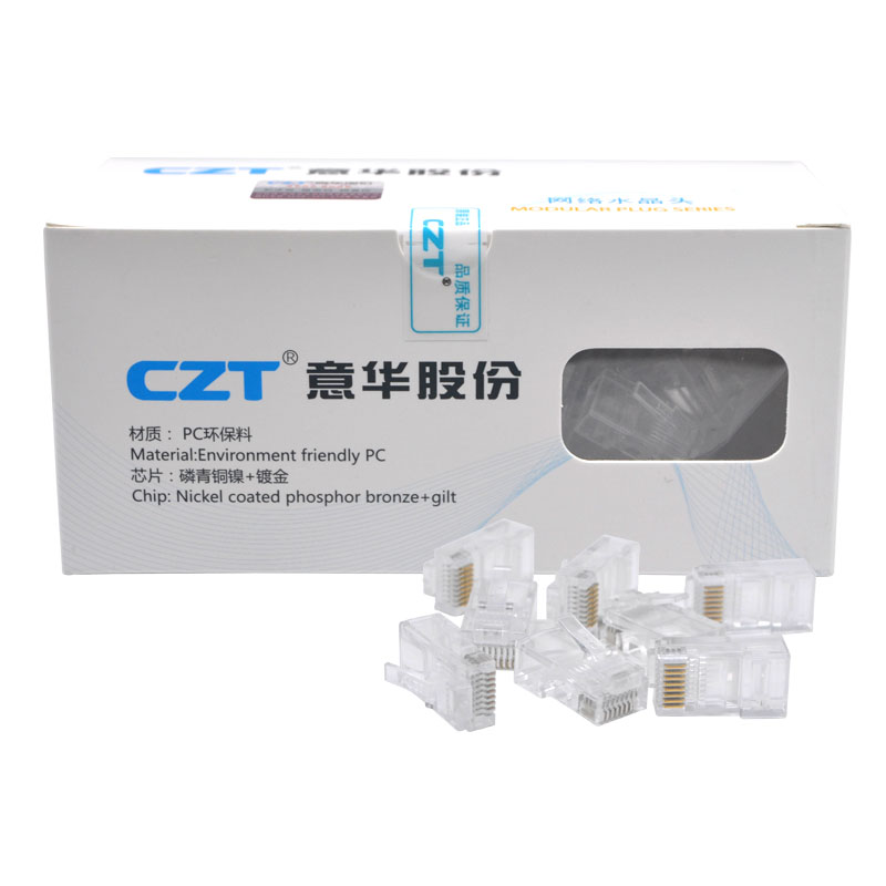 Original CZT Yihua CAT6 standard engineering grade six crystal head gold-plated RJ45 network crystal head 100 boxes