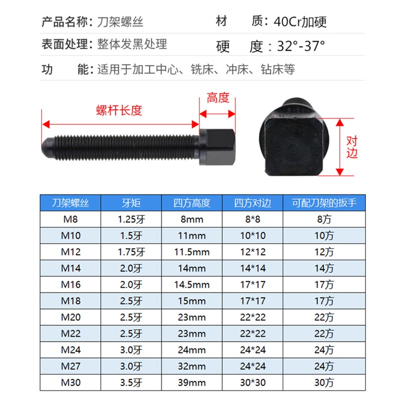 Tool holder screw 40Cr quenching grade 10 9 lathe square head tool holder screw bolt screw M10M12M16M20