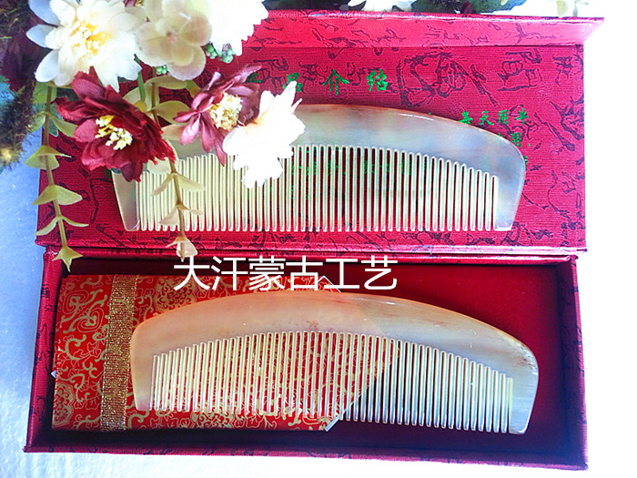 Horn Comb Natural Handmade Grinding Yellow Horn Box Comb Inner Mongolian Horn Comb 15cm Fine Corner Comb