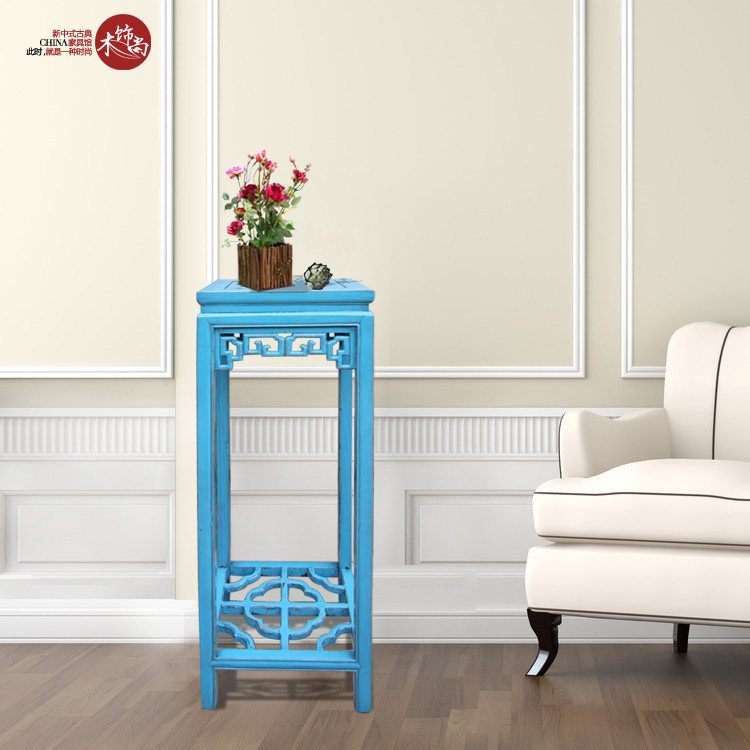 Wooden decoration Shangxin Chinese classical furniture special price full solid wood flower stand multi-color carved balcony export flower pot stand
