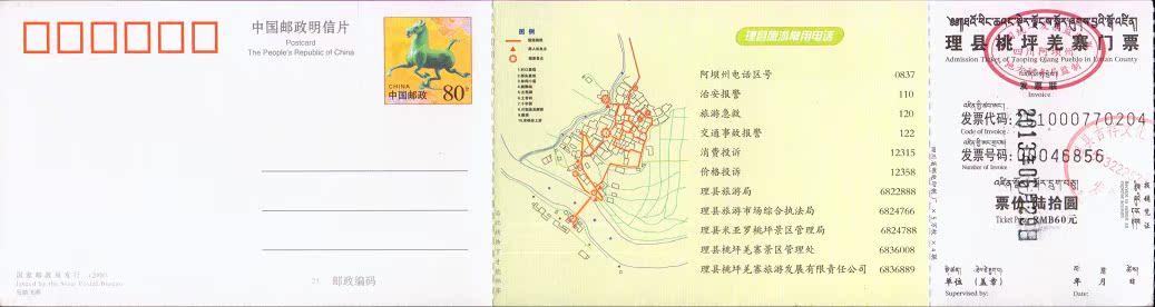 Sichuan Li County Taopun Qiangzhou Tourism-80 min Taiping Yan Postcard Postcard Postcard (Ticket)