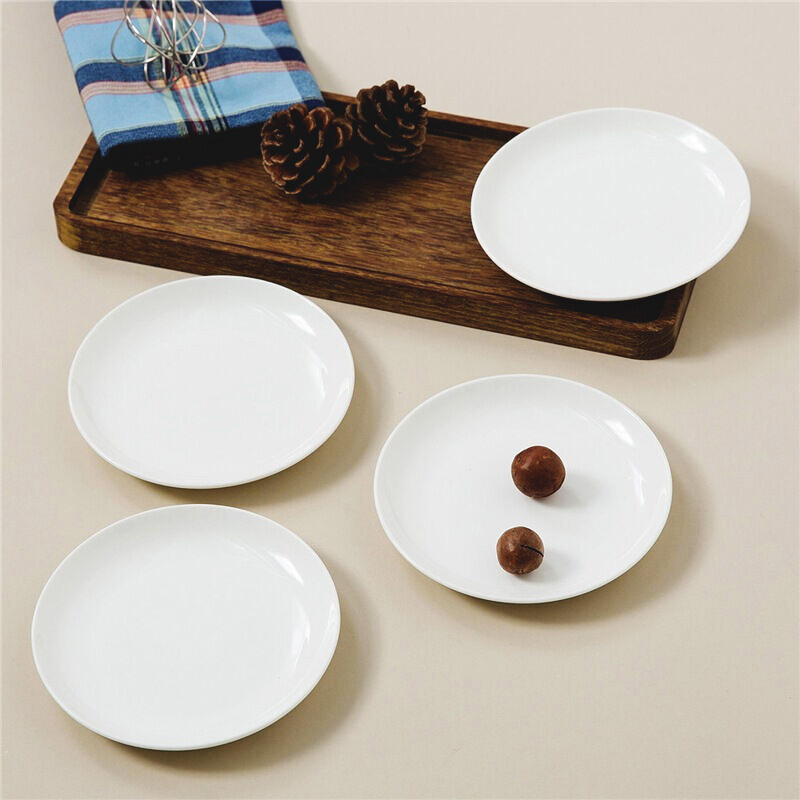 Pure White breakfast plate ceramic steak plate Western plate shallow plate flat plate round plate cake snack plate household meal plate