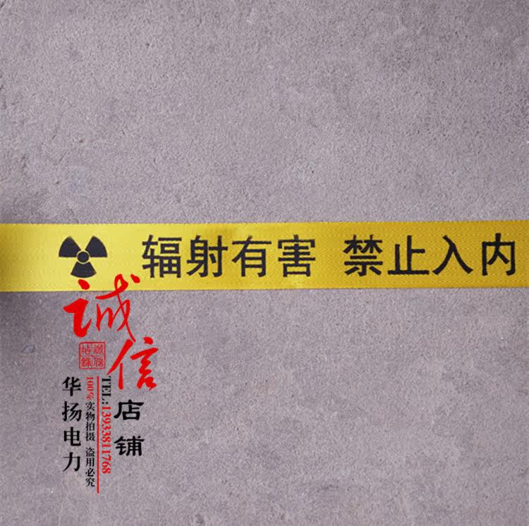 Watch out for ionizing radiation warning with cordon construction isolation with guardrails with canvas warning with boxed box