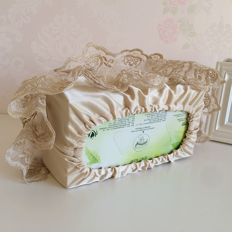 Champagne gold fashion court embroidery Gold silk embroidery European tissue box Tissue cover two high-grade satin