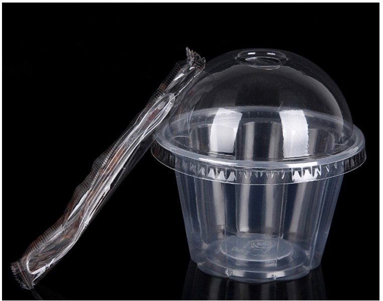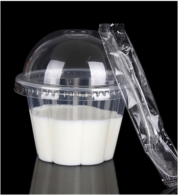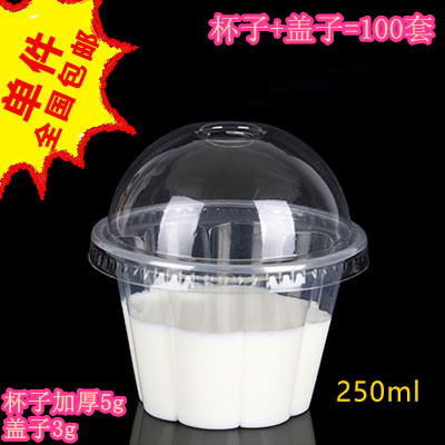 Plastic Cup Disposable Pudding Cup Jelly Cup Tortoise Cream Bowl Double Leather Milk Bowl Fresh Milk Bar 250ml Plum Blossom Cup