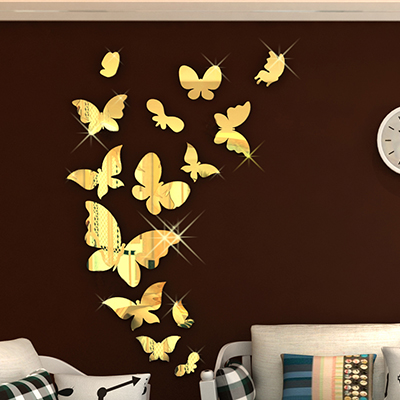 Mirror butterfly 3d stereo acrylic wall sticker drawing room Children's room Bedroom headboard Background wall Decorations