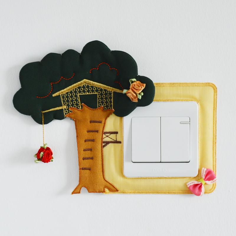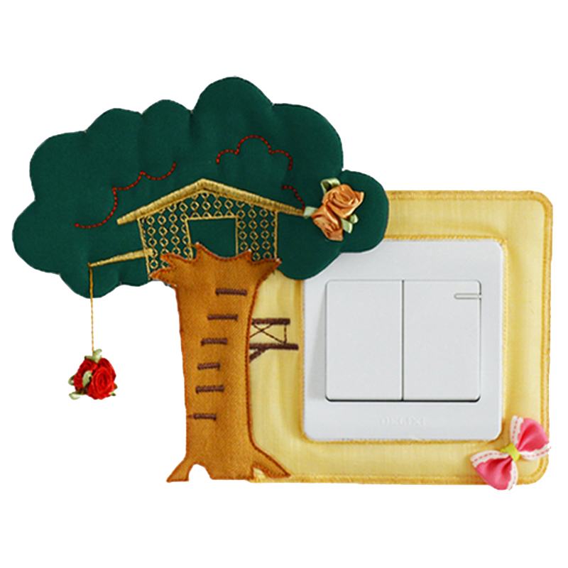 New fabric switch cover Handmade feature wall sticker Switch sticker Socket cover wall fire sticker (tree house)