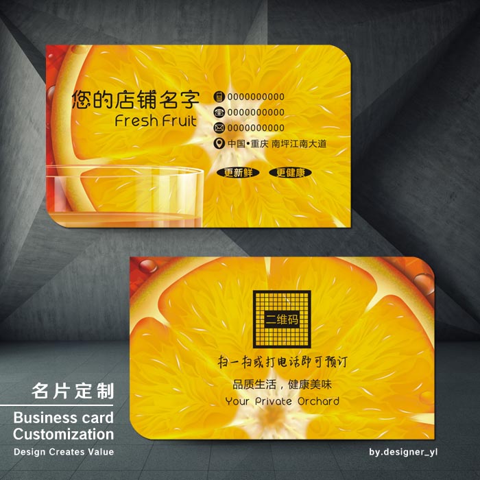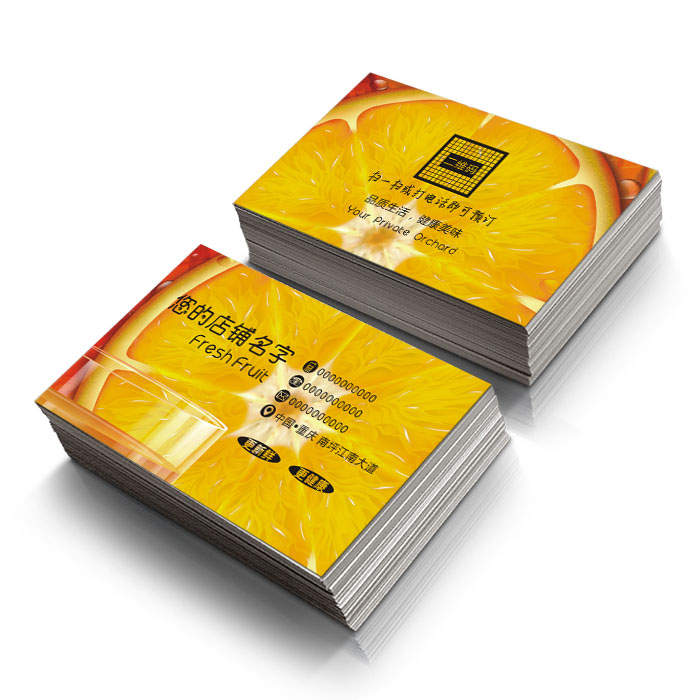 Fresh juice shop business card production Fruit supermarket beverage convenience store design Orange juice rounded small card printing