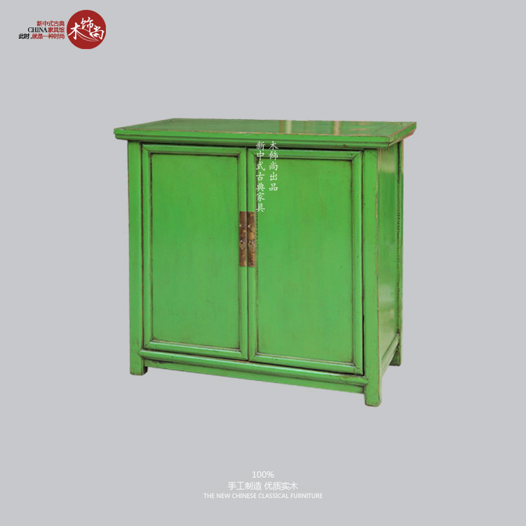 New Chinese vintage furniture full solid wood made of old two-door cabinet green shoe cabinet door hall decoration Xuan guan cabinet foreign trade outlet