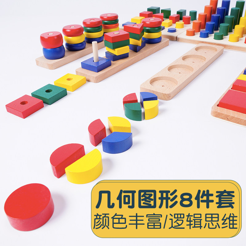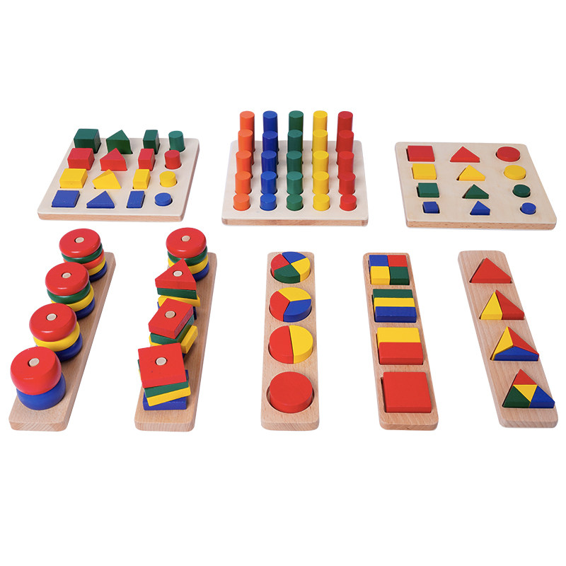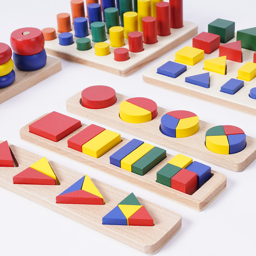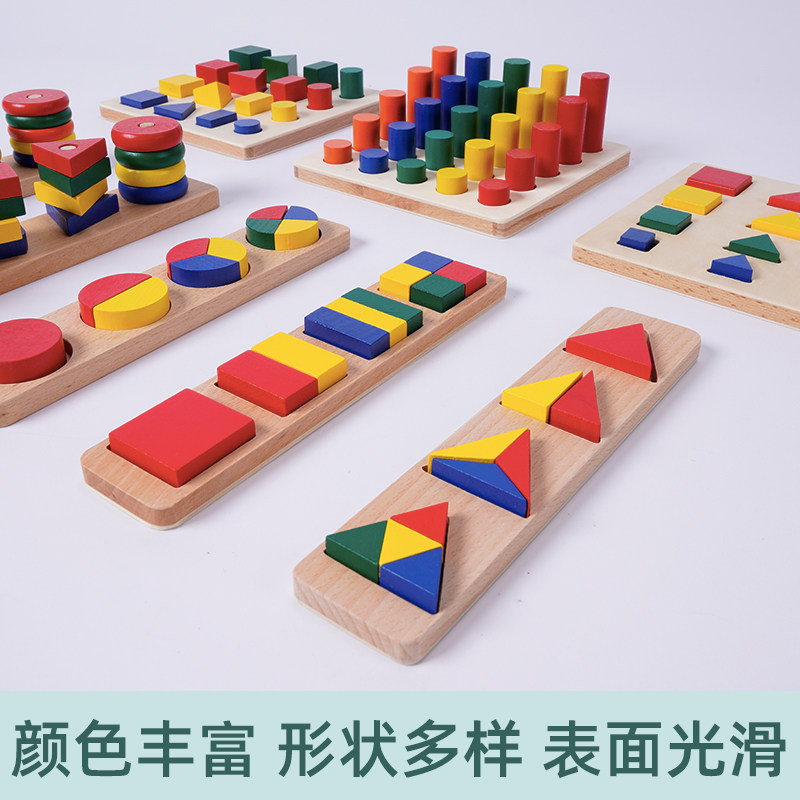 Mont Teaching Aids Geometry shape Color Morning teach Children Montessori feel integrated training Puzzle Toy Building Blocks