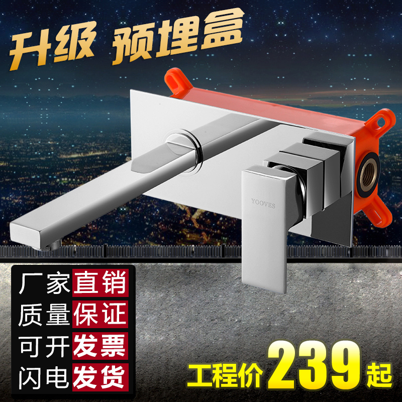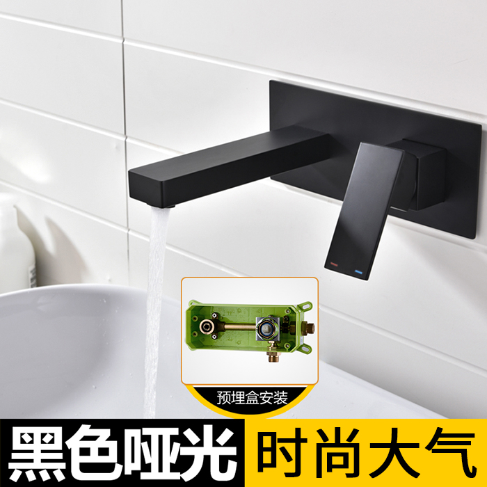 Dark into the wall basin faucet Black all copper hot and cold table basin faucet Embedded box Embedded faucet