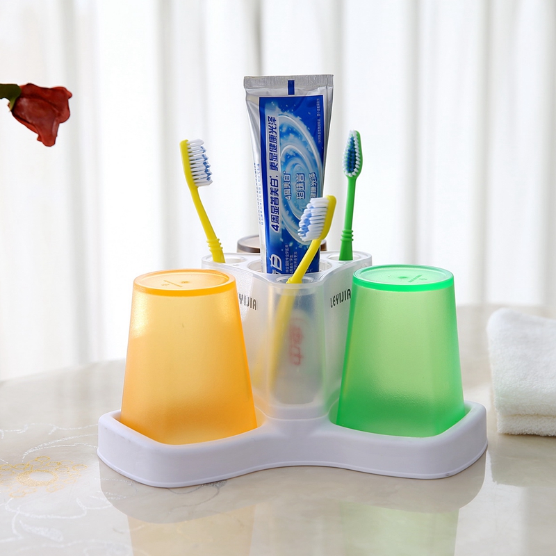 Creative Trio House Wash Four-Mouth Toothbrush Rack Suit Two Mouthwash Cup Suction Cups wall-mounted