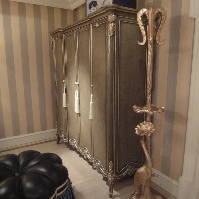 Xinyi Xuan Customized Furniture New Classical Eu Style Four Doors Large Wardrobe Flat Open Containing Cabinet Large Closet Storage Cabinet