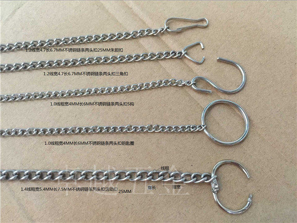 Number 1 chain length 25cm Two ends buckle Jubiliary buckle 2 Number of chains Long 25cm Two ends fit triangular buckle 3 Number of chains Long 25cm Two ends buckle S hook 4 Number of chains Long 25cm Two ends buckle Keyring 5
