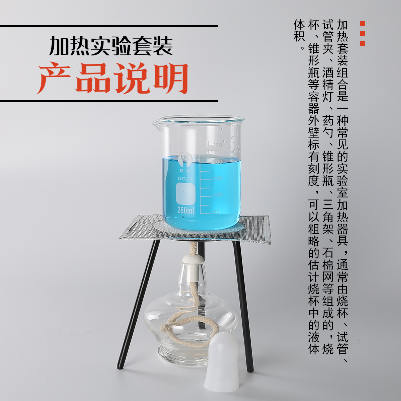 Beaker 250ml triangular flask 150ml iron tripod glass test tube 15 * 150mm bamboo tube clamp asbestos mesh 150 * 150mm rubber head dropper 1