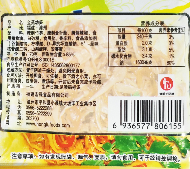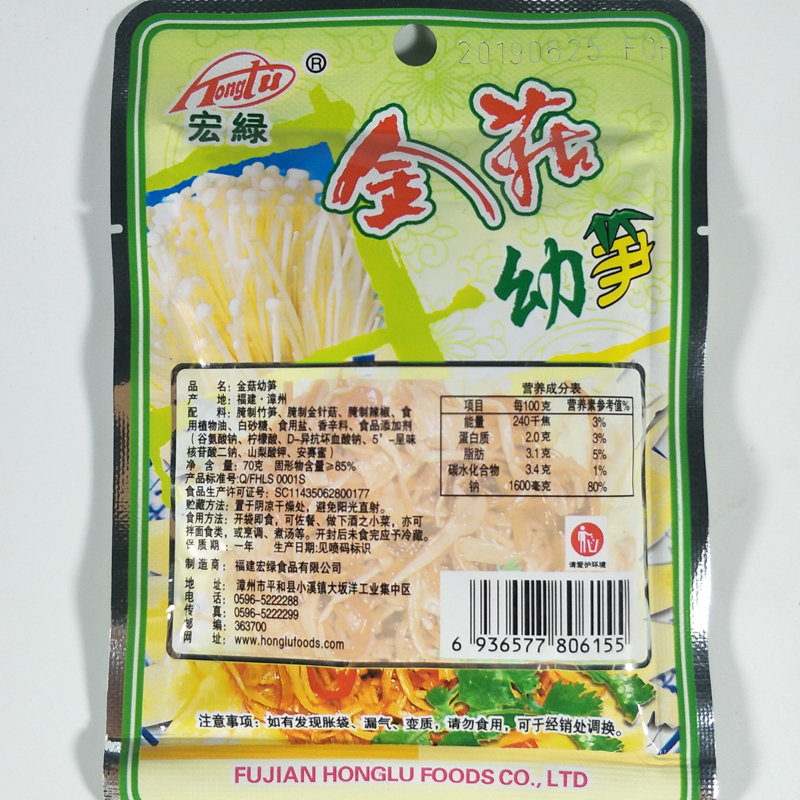 Golden needle mushrooms bamboo shoots edible vegetable oil white sugar edible salt, etc.