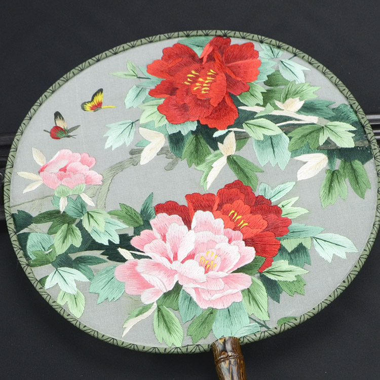 Pure hand-embroidered embroidered Suzhou embroidered fan double-sided embroidered peony hand-held palace fan special craft fan Chinese style gift