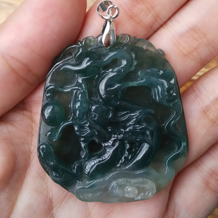 Emerald dragon card pendant pendant A cargo emerald oil Qinglong A cargo processing Xiu jade yellow white Old jade river grinding jade dragon pendant