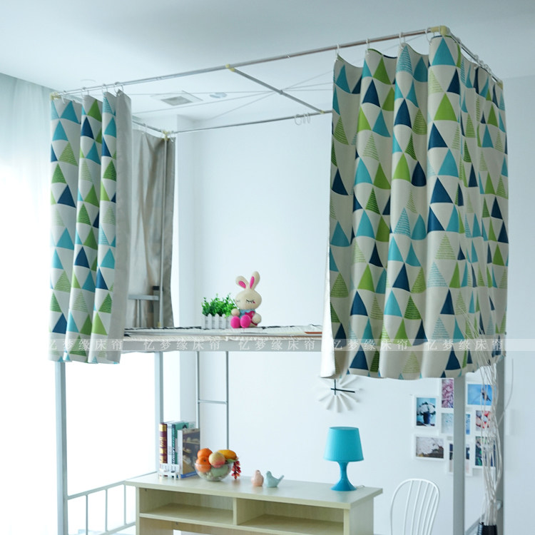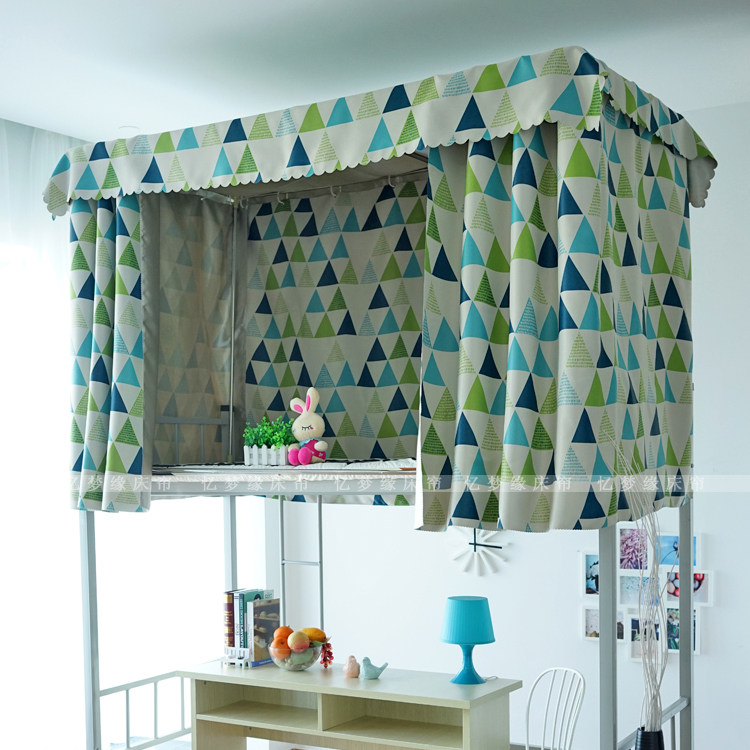 Cartoon Green Triangle Small Frescoed Student Dormitory Shading Bed Curtain Mantle Thickening High Shading Dorm Room Upper And Lower Bunk Beds