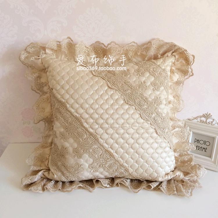Eurostyle Princess Bed Accessories Silk Satin Champagne Golden Square Pillow Holding Pillow Cute Lace Lace Back Cushion Candy Pillow