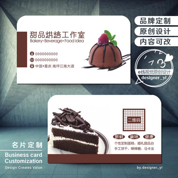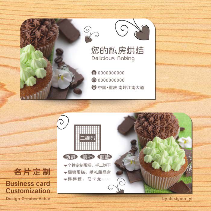 Cake shop business card making personality design handmade baking private dessert DIY pastry round corner card printing