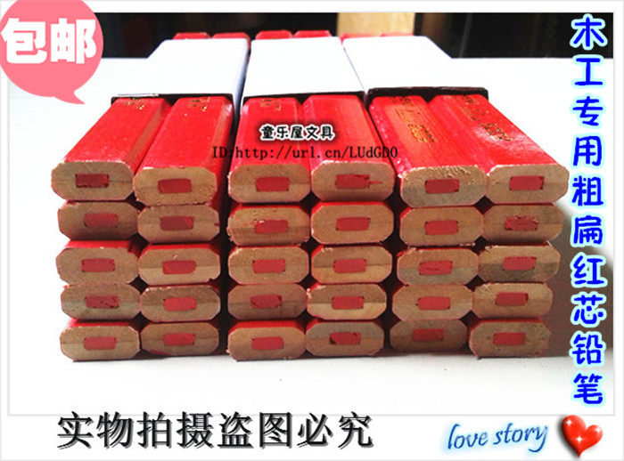Red core woodworking pencil flat core thick core scribing pencil woodworking with thick core woodworking pencil