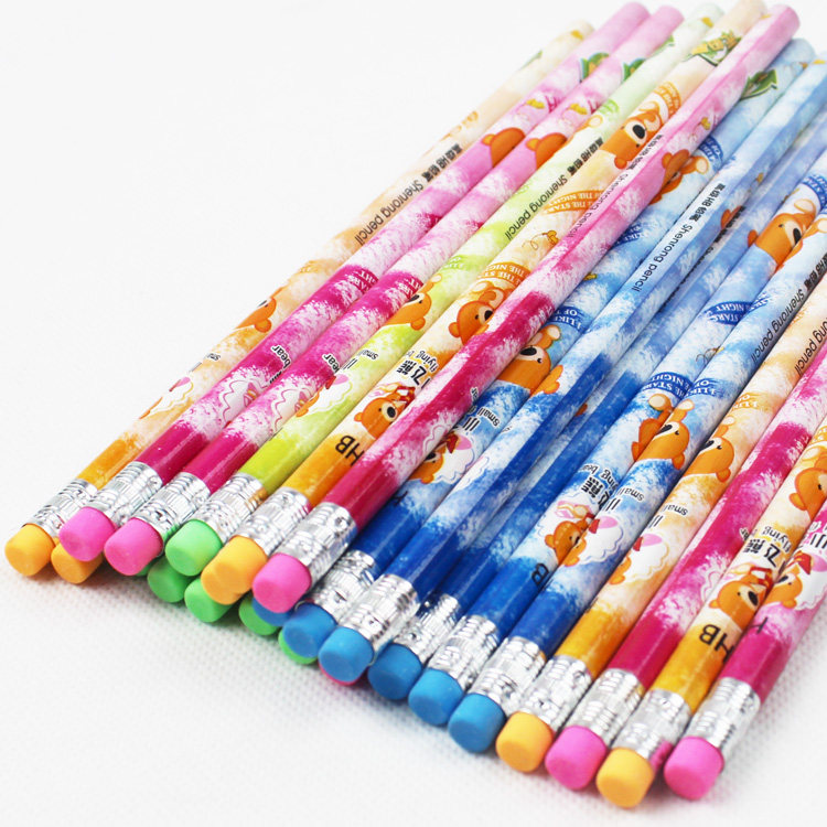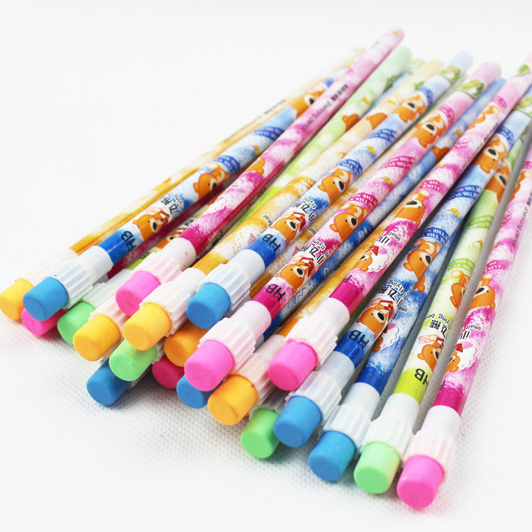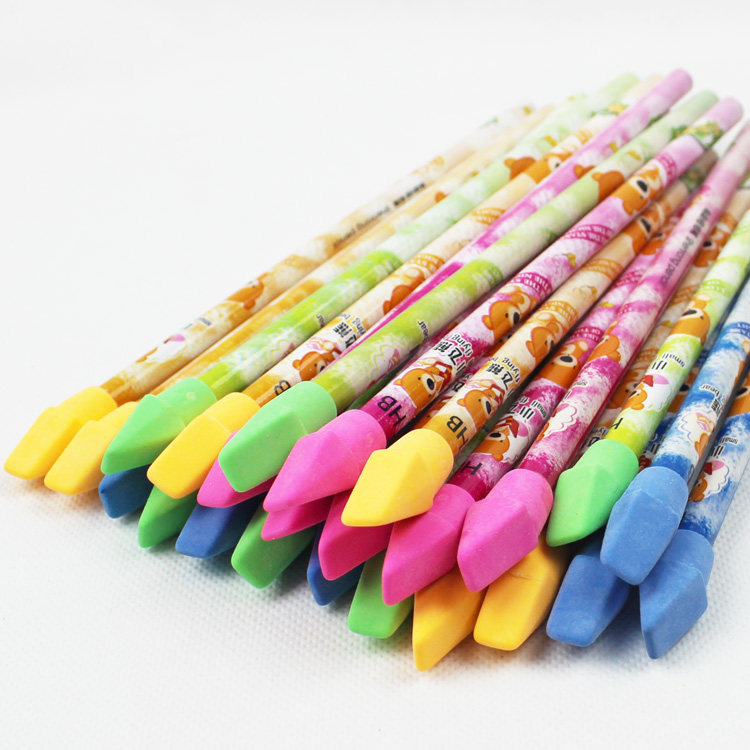 Primary school student HB pencil with rubber head torch head eraser cartoon for fluent