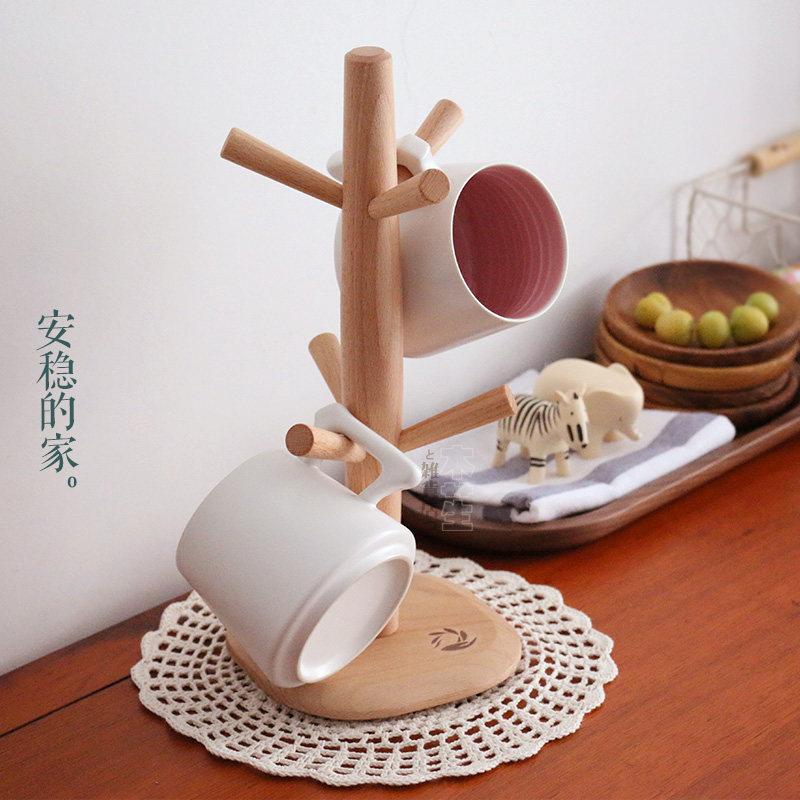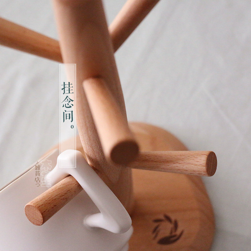 -- Japan-style beech wood cup rack kitchen shelving cup rack six paws mark cup holder restaurant containing shelf-Taobao